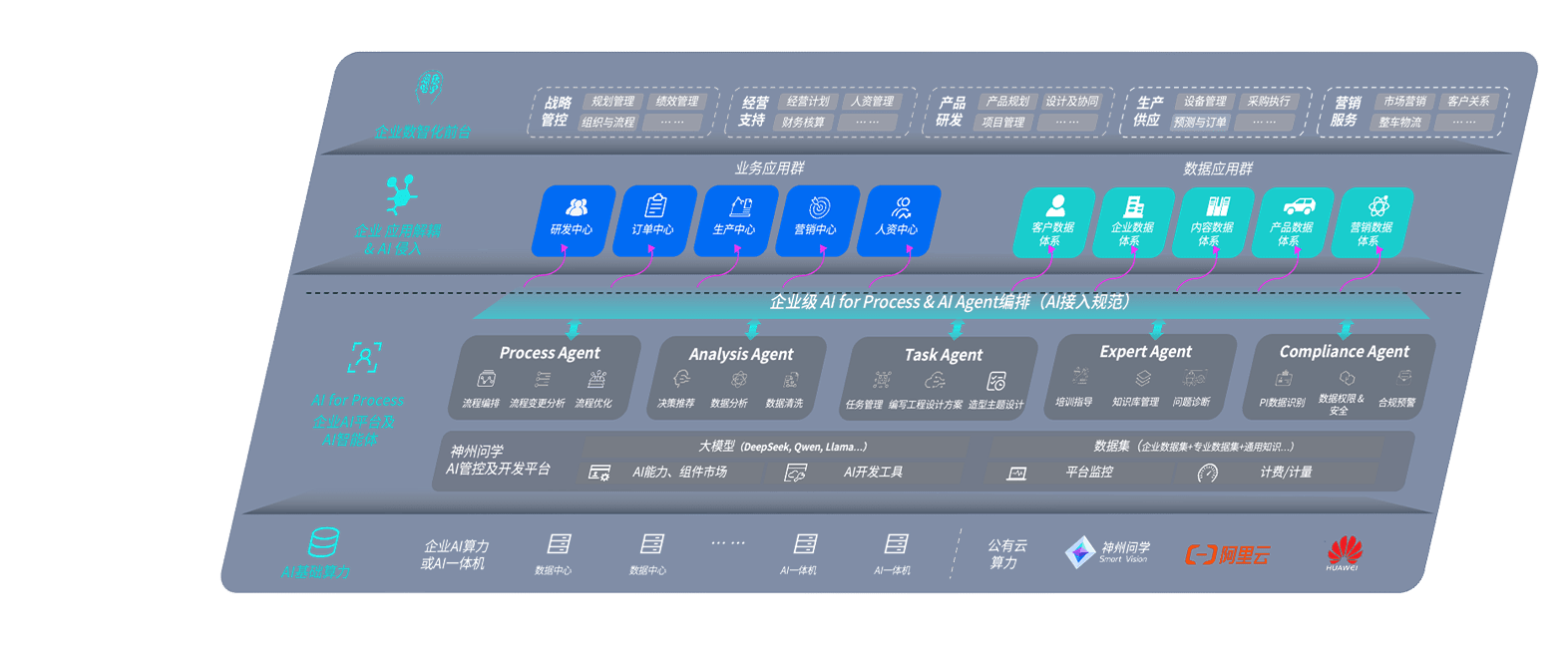 端到端的一站式AI工作空间深度融合了从企业战略规划到日常经营的全流程业务板块,,,,定向解决车企内部领域多、、部门多、、链条长、、、场景碎片化等难题,,,支持车企快速构建以AI为核心的生产力写作体系,,,,实现任务执行与AI能力的无缝集成与交互